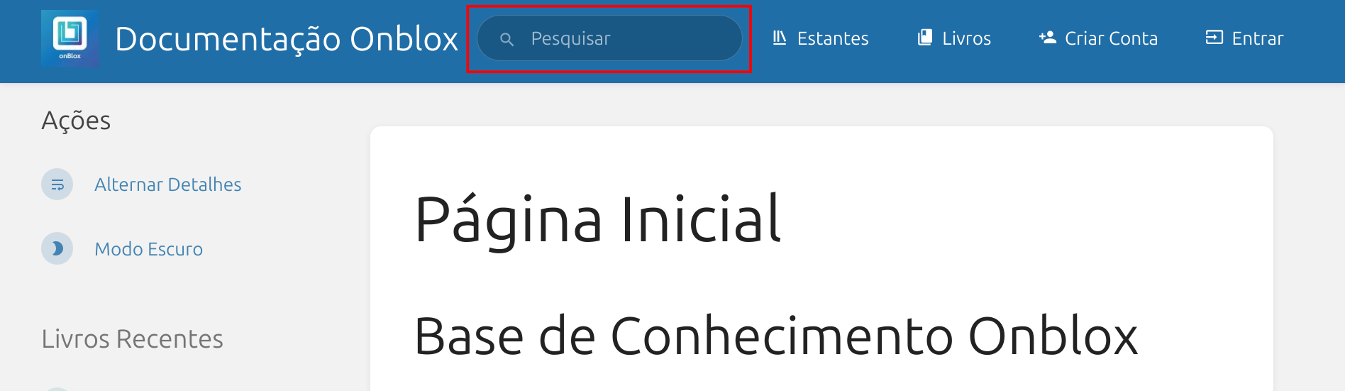 A base de conhecimento da Onblox possui diversas funcionalidades para te auxiliar a encontrar as respostas da forma mais rápida e eficiente possível. Nessa página, vamos explorar a estrutura da documentação, assim algumas dessas funcionalidades e como utilizá-las.